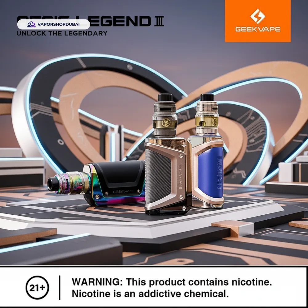 Elevate your vaping lifestyle with the GeekVape Aegis Legend III 3 Kit 200W with Z Fli Tank Atomizer 5.5ml In UAE, a device designed to meet the high standards of vapers in Dubai and across the UAE. Engineered with heat-resistant materials perfect for the local climate, this unit combines durability with sleek aesthetics.