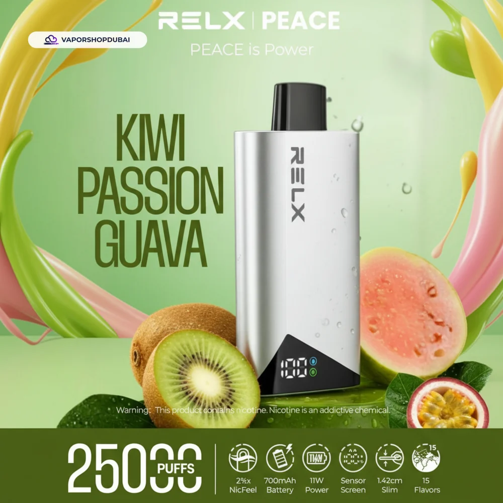 Elevate your vaping lifestyle with the Relx Peace 25000 Puffs Disposable Vape In DUBAI,UAE, a device designed to meet the high standards of vapers in Dubai and across the UAE. Engineered with heat-resistant materials perfect for the local climate, this unit combines durability with sleek aesthetics.