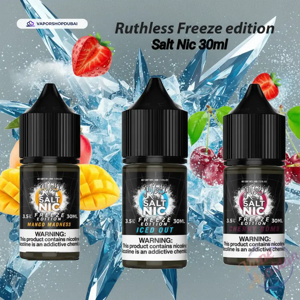 Elevate your vaping lifestyle with the Ruthless Freeze Edition Salt Nic 30ml In UAE, a device designed to meet the high standards of vapers in Dubai and across the UAE. Engineered with heat-resistant materials perfect for the local climate, this unit combines durability with sleek aesthetics.