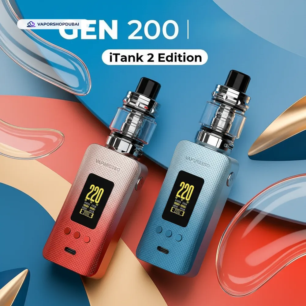 Elevate your vaping lifestyle with the Vaporesso GEN 200 Kit iTANK 2 Edition In UAE, a device designed to meet the high standards of vapers in Dubai and across the UAE. Engineered with heat-resistant materials perfect for the local climate, this unit combines durability with sleek aesthetics.