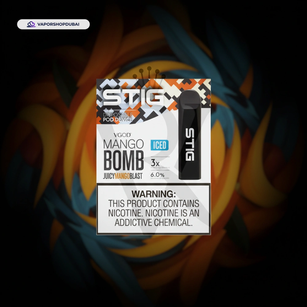 Elevate your vaping lifestyle with the VGOD STIG DISPOSABLE ICED MANGO BOMB, a device designed to meet the high standards of vapers in Dubai and across the UAE. Engineered with heat-resistant materials perfect for the local climate, this unit combines durability with sleek aesthetics.