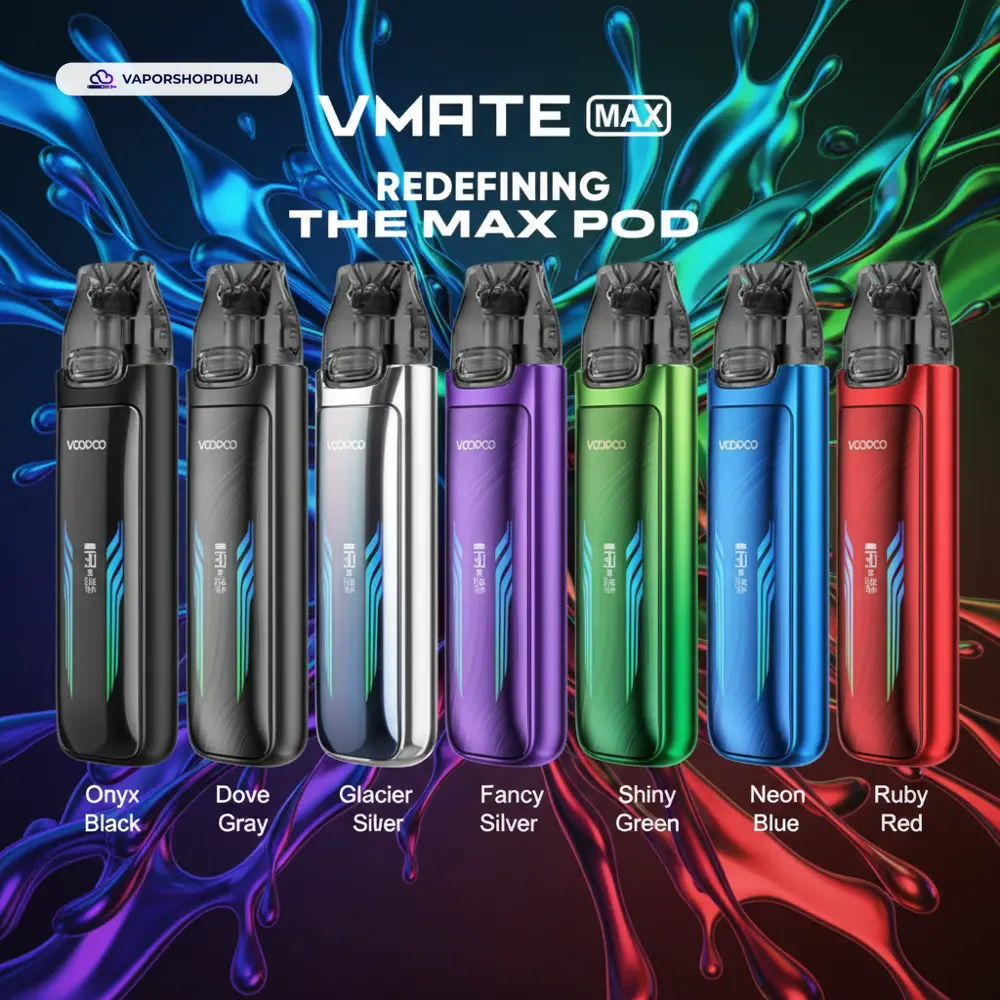 Elevate your vaping lifestyle with the VOOPOO Vmate Max Pod Kit 1200mAh In UAE, a device designed to meet the high standards of vapers in Dubai and across the UAE. Engineered with heat-resistant materials perfect for the local climate, this unit combines durability with sleek aesthetics.