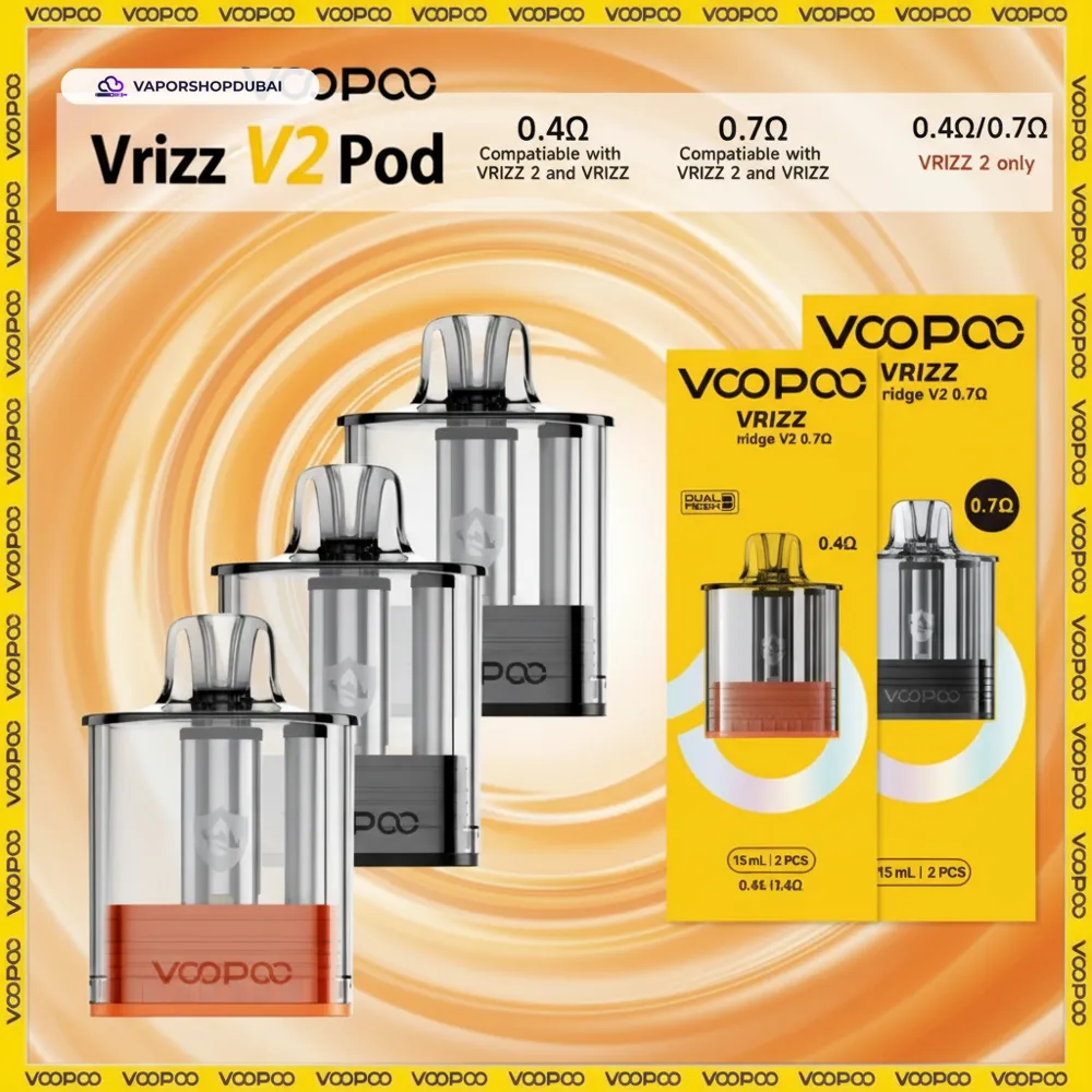Elevate your vaping lifestyle with the VOOPOO VRIZZ V2 15ml Pod Cartridge (2pcs/pack), a device designed to meet the high standards of vapers in Dubai and across the UAE. Engineered with heat-resistant materials perfect for the local climate, this unit combines durability with sleek aesthetics.