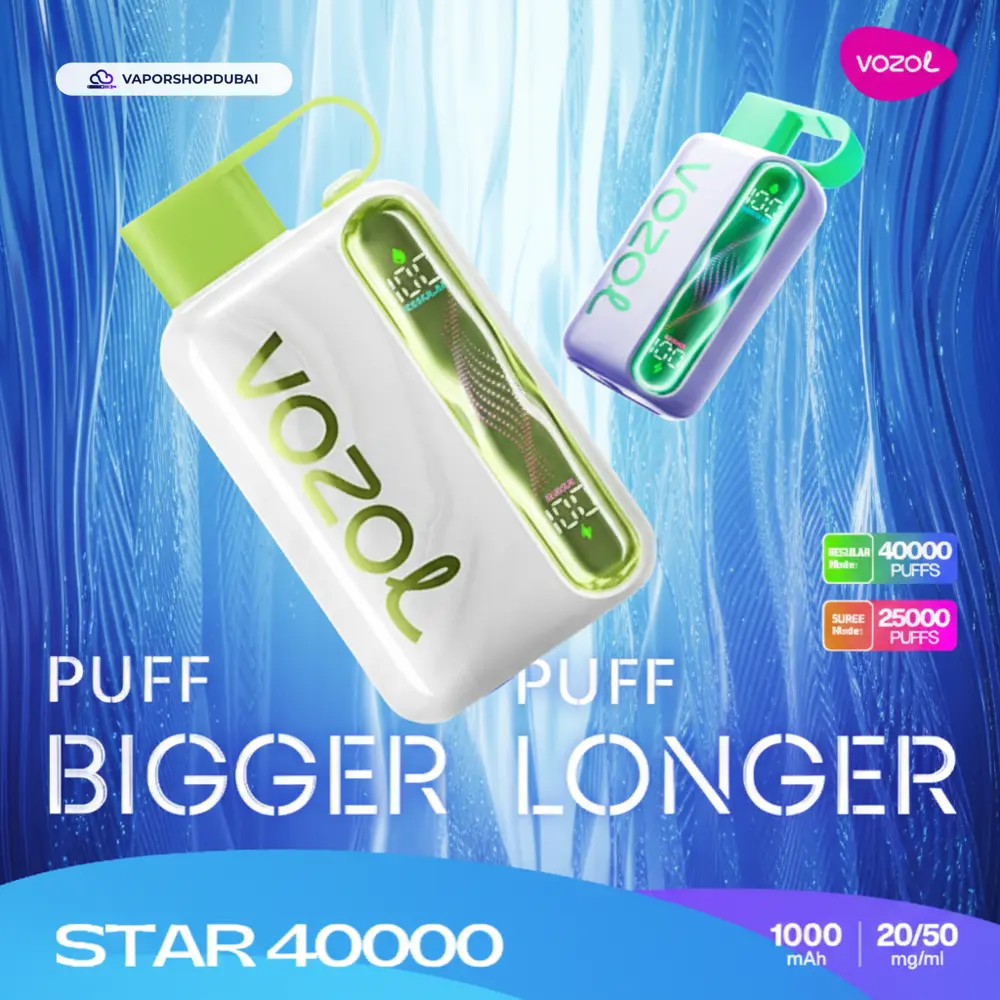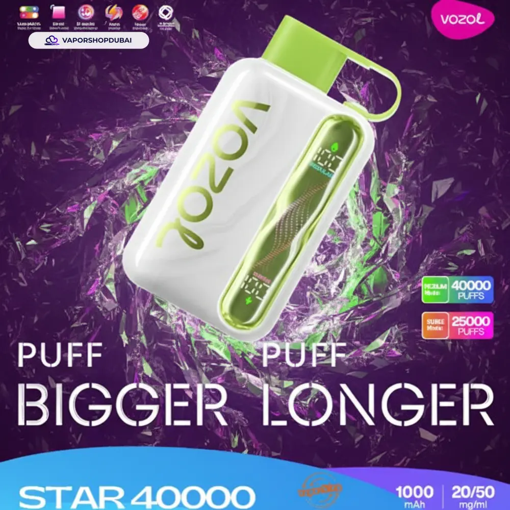 At its core, the Vozol Star 40000 Puffs Disposable Vape In UAE features advanced coil technology that ensures every puff is as flavorful as the first. Whether you are relaxing at home or on the move, the reliable battery ensures you are never left without power. Shop with total confidence knowing you are purchasing a 100% authentic product from Vapor Shop Dubai, backed by our legendary 1-hour express delivery service.